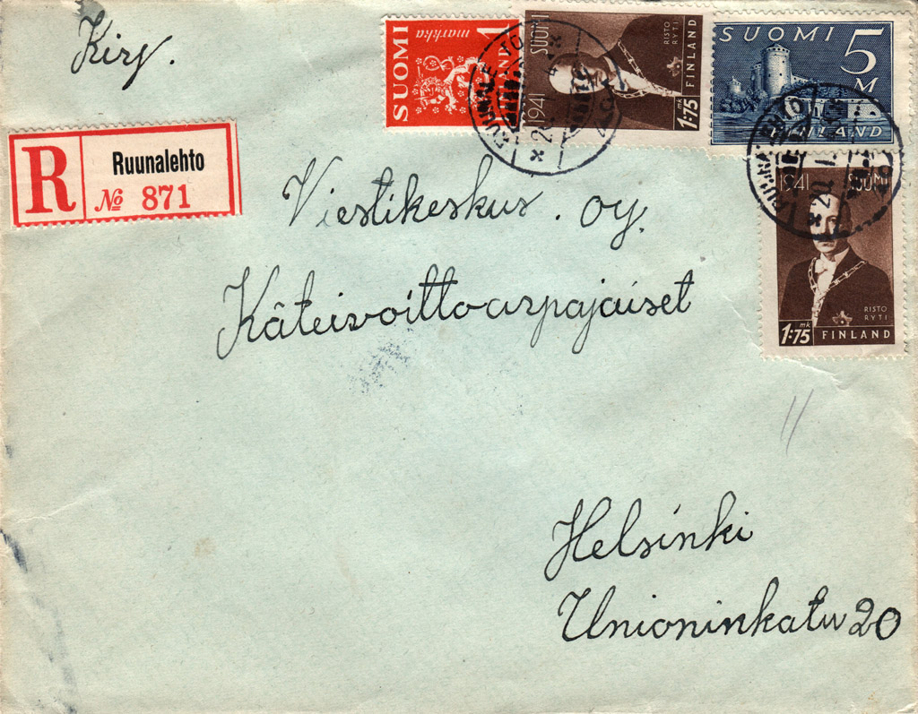 cancellation stamp of Ruunalehto. The post office and it's cancellation